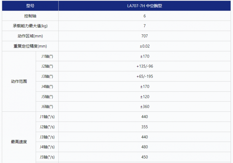 LEANTEC 工业机器人LA707-7H中空腕型系列